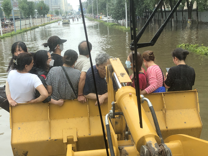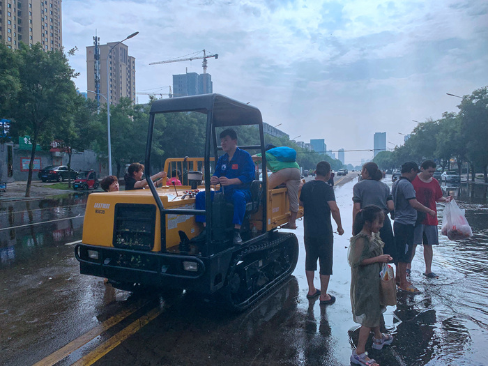 自20日起,集团派出铲车、多功能工具车等多台设备为被大水围困的居民接驳人员、物资,同时开放休息室为周围停电居民提供充电服务。
